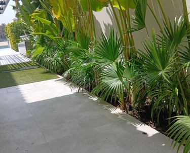 We personally planted elegant fan palms for our client, who had always dreamed of having a beautiful garden at home. Unfortunately, due to limited space, creating a full garden wasn’t possible. However, our team came up with a creative solution — by installing stylish fan palms along the wall, we transformed the entire look of the house. The greenery added life, freshness, and a natural aesthetic charm, turning the limited space into a relaxing and visually appealing area that perfectly matched the client’s vision.