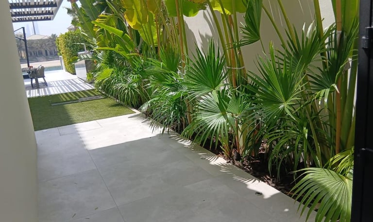 Using professional tools and safety measures, we achieved a clean, artistic result that adds elegance and natural beauty to the property. This living sculpture enhances the villa’s overall charm and reflects Dubai’s high landscaping standards — where style and nature blend perfectly.